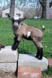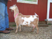 Beautiful blue-eyed dark brown chamoisee doe. Named "Skye Blue" for those stunning sky blue eyes!!